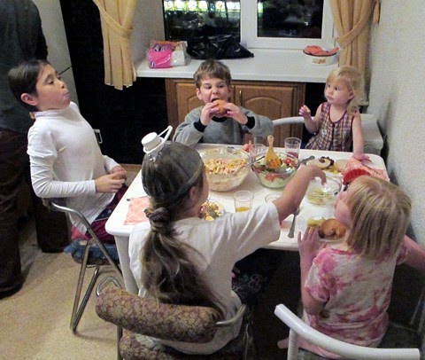 We're so glad the Hinson Family is here in Khabarovsk. They are a real answer to prayer. Here's a photo of my kids teaching their kids some bad manners.